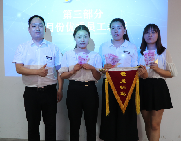 根據(jù)月度考核評(píng)比,最終銷售部鄧良花、張紫玲、陳小夢3位家人取得月度銷售冠亞季軍稱號(hào);會(huì)計(jì)部焦瑩獲得月度服務(wù)之星獎(jiǎng);人力資源部陳盼、58同鎮(zhèn)渠道部劉山、人事部孔玲獲得首屆抖音大賽冠亞季軍獎(jiǎng);德隆財(cái)稅團(tuán)隊(duì)獲得月度優(yōu)秀團(tuán)隊(duì)獎(jiǎng),由李總為獲獎(jiǎng)家人頒發(fā)榮譽(yù)證書及獎(jiǎng)金。感動(dòng)來自平凡,榜樣就在身邊,臺(tái)上的光榮都承載著辛勤和汗水。6月,他們用拼搏贏得了屬于自己的榮耀,鑄成榮譽(yù)高光時(shí)刻?!皟?yōu)秀員工”是公司的最高榮譽(yù),也是對(duì)大家辛勤工作的最大肯定!俗話說“三十六行,行行出狀元”,德隆成立七余年,正是有像你們這樣一批批優(yōu)秀的員工,德隆的事業(yè)才能得以不斷發(fā)展壯大,感謝你們用重復(fù)創(chuàng)造卓越!向你們致敬!