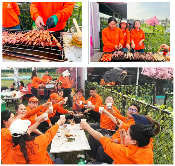 燒烤環(huán)節(jié),大家熱情高漲,紛紛擼起袖子,全情投入其中。有人負責處理食材,有人專注烤制,刷油、撒料一氣呵成。不一會兒,濃郁的香味便飄散開來。在炭火的炙烤下,各類食材滋滋作響,色澤愈發(fā)誘人,令人垂涎欲滴 ,每個人都沉浸式體驗到“自己動手,豐衣足食”的樂趣??旎畹姆諊诳諝庵兴烈饴?,大家圍坐在烤爐旁,一邊品嘗美食,一邊分享工作與生活里的各種趣事。燒烤架上跳躍的火苗,如同友誼的催化劑,讓同事間的感情迅速升溫。在這里,大家卸下了工作的壓力與生活的疲憊,盡情暢談、歡笑,現(xiàn)場其樂融融 。